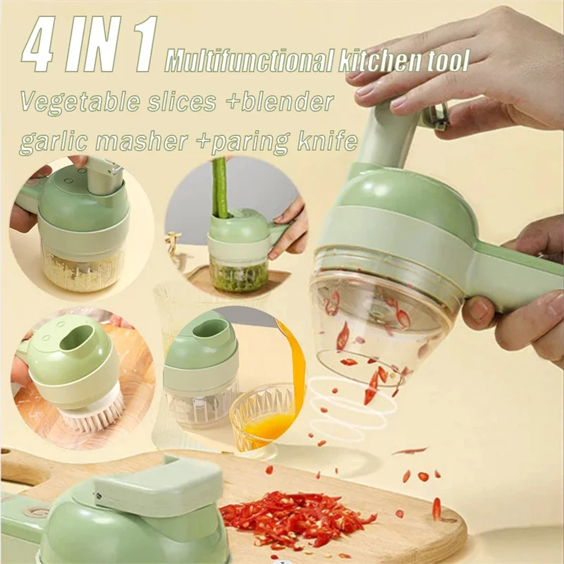 4 In 1 Portable Electric Vegetable Cutter Set Mini Wireless Food Processor Garlic Chili Onion Celery Ginger Meat Garlic Chopper